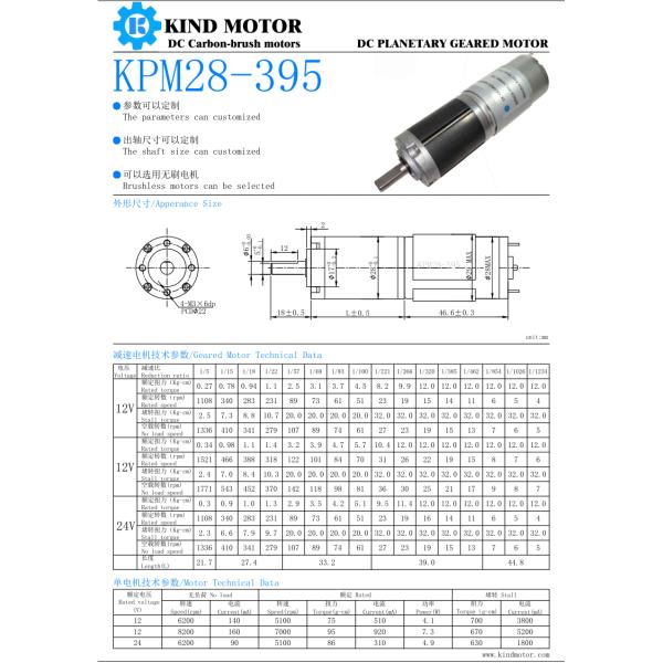395 dc brush motor with 28mm diameter planetary reduction gearbox